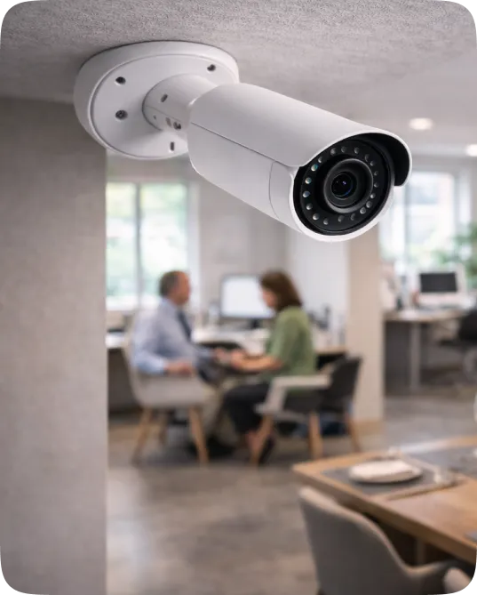 Work Area: Wide-angle coverage over chairs or stations to ensure professional behavior and security.