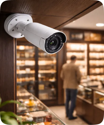 Entrance / Window: One camera facing the storefront or entrance to capture visitors and provide a clear street view, make sure it performs well even at night.